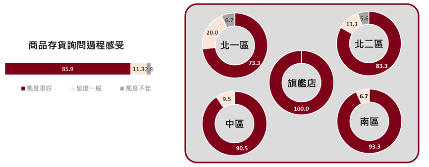 當顧客面對空蕩蕩的貨架,原先對商品的期待瞬間落空,此時,第一線服務人員的職業自覺與應對,就成了守護品牌體驗的重要防線。儘管面臨缺貨壓力,多數人員仍展現出良好的基本素養。 調查顯示,有 85.9% 的顧客在詢問存貨時,感受到人員良好的服務態度。