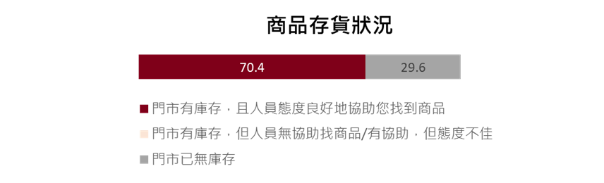 走進賣場,數據告訴我們一個不可忽視的營運現況:本次評鑑有 29.6% 的門市發生缺貨狀況。尤其在季節性食品上最為明顯,例如特定熱門商品缺貨就高達7次。